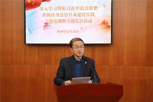 乍暖还寒冬至日,专题党课暖消寒。12月21日,甘肃省司法厅组织开展“深入学习贯彻习近平法治思想 积极投身法治甘肃建设实践”专题党课暨主题党日活动。省司法厅党委委员、副厅长韩世峰同志围绕深入学习贯彻习近平法治思想为分管业务处室、单位作专题党课辅导,厅律师工作处处长李智主持专题党课暨主题党日活动。