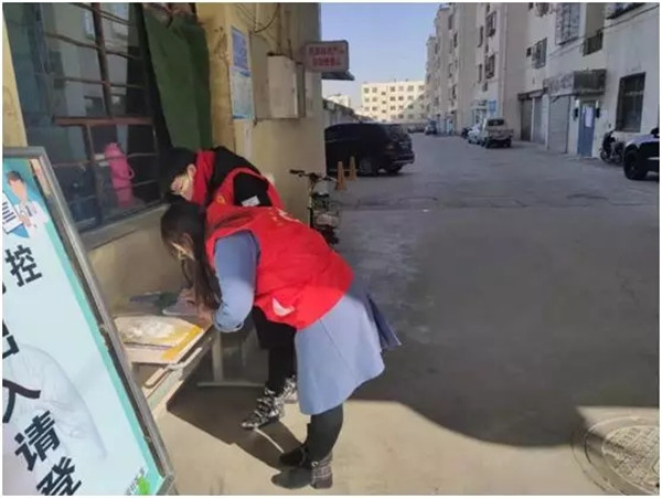 志愿者协助社区宣传防疫知识