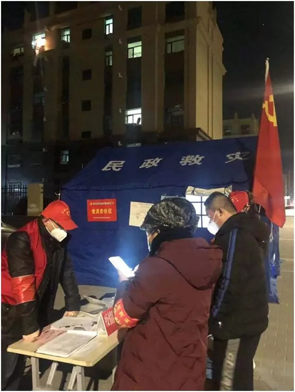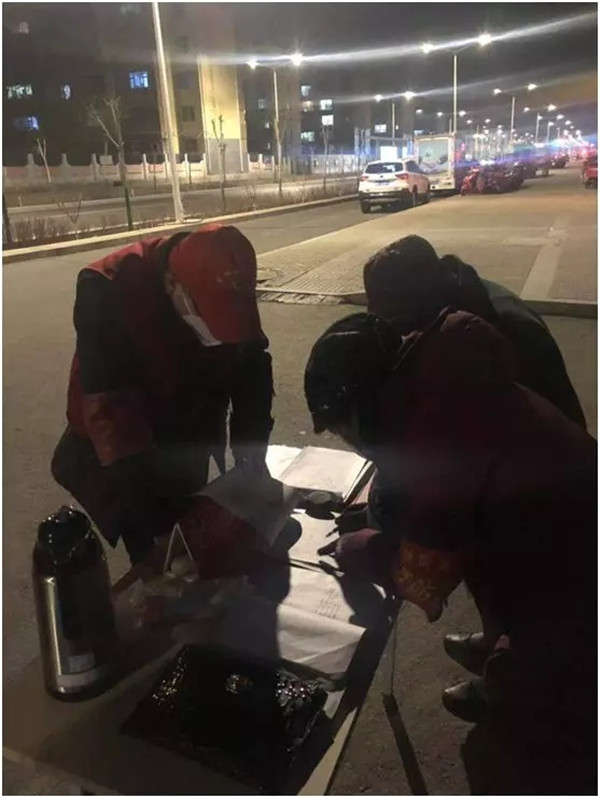 建林社区志愿者对夜间进出人员盘查登记