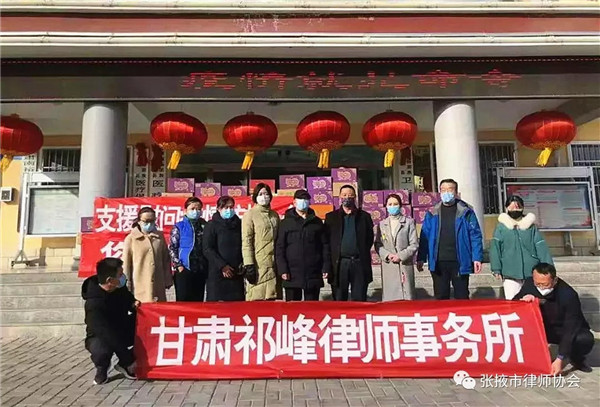1月30日,甘肃祁峰律师事务所得知肃南县奋战值守在交通、社区、道路、卡点等的一线疫情防控人员急需生活保障物资的实际情况后,立即通过肃南县司法局向有关部门取得联系,迅速筹措一批防控人员生活所需物资于1月31日上午,向肃南县疫情防控领导小组办公室、应急指挥部、县红十字基金会负责人进行了相关物资的捐赠。祁峰律师事务所献爱心的实际行动践行了“守初心,担使命”的誓言和为人民群众服务的宗旨。