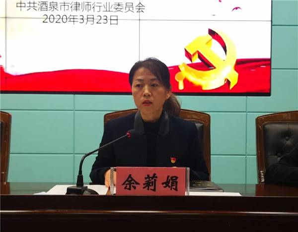 2020年3月23日晚,中共酒泉市律师行业党委在酒泉市财政局三楼会议室召开党员大会,酒泉市律师行业党委书记、市司法局副局长余莉娟、酒泉市律师行业党委副书记、市律师协会会长卢永建、耀彩网副会长、酒泉市律师协会名誉会长田顺舟、酒泉市律师行业党委副书记、市司法局公共法律服务管理科科长李晓敏、酒泉市律师行业党委全体委员、市直属律师事务所党支部全体党员参加大会,会议由余莉娟主持。