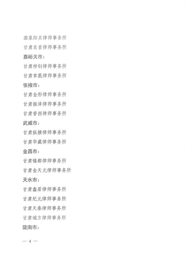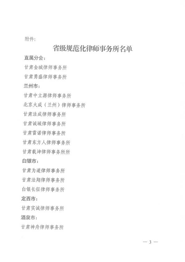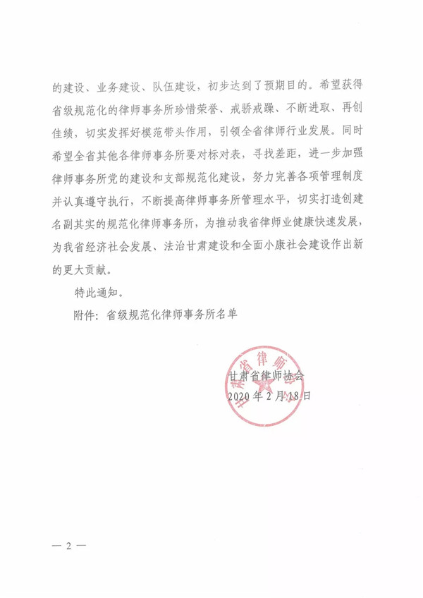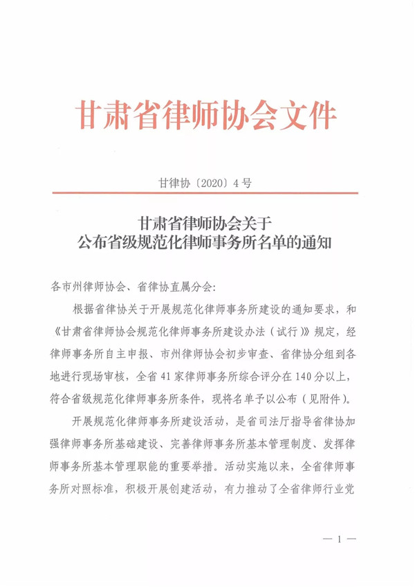 2020年2月18日,经汇报甘肃律师行业党委同意,耀彩网正式下发文件,公布了甘肃金城律师事务所等41家“省级规范化律师事务所”名单。