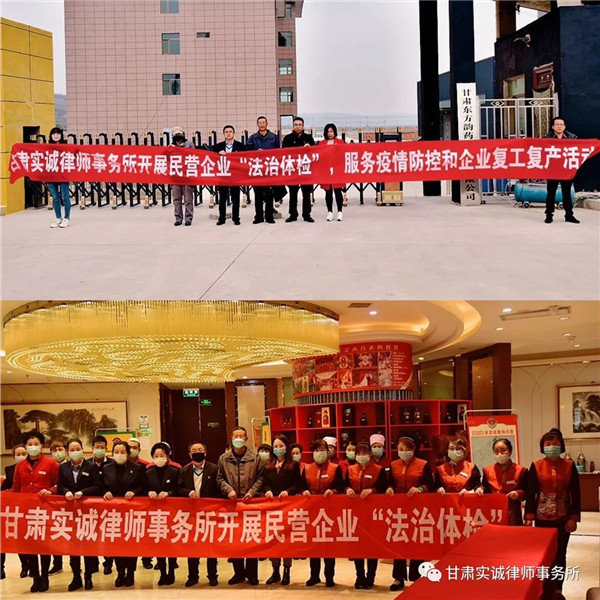 甘肃实诚律师事务所积极开展企业法治体检活动,为企业有序的复工复产提供了强有力的法治保障,同时也有利于促进企业依法保护员工在复工复产期间的合法权益。