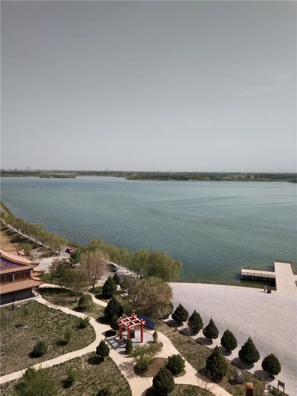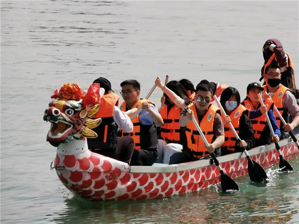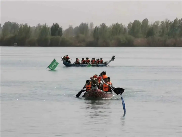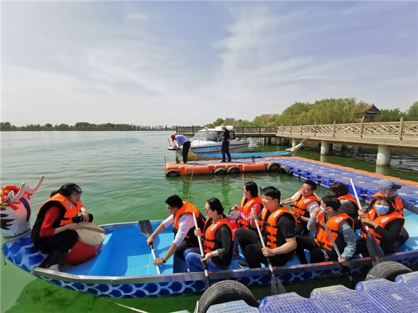 第三站队伍来到大湖湾景区,乘观光车游览黑河护岸河道治理工程及湿地公园,攀观崇文楼,湖心岛参加赛龙舟比赛。