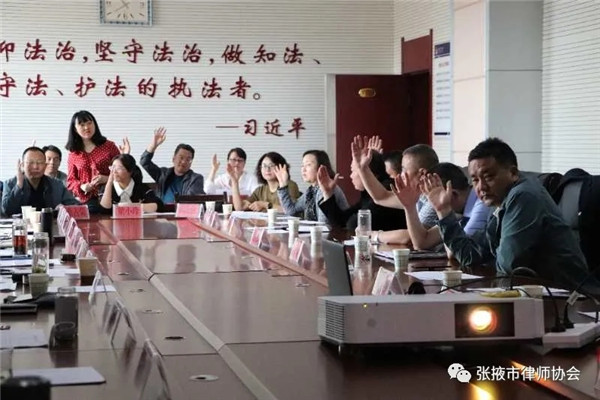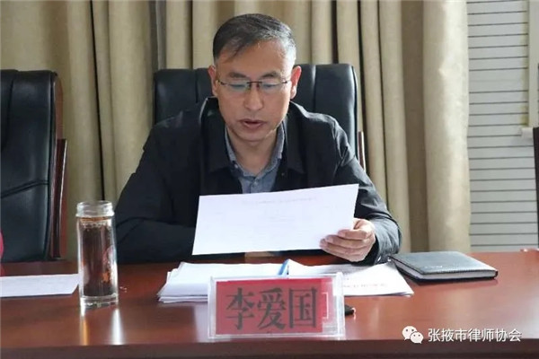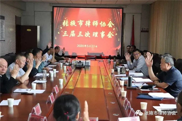 2020年5月23日上午,张掖市律师协会三届三次理事会议在市司法局十一楼会议室召开,协会会长李爱国及其他班子成员、监事长张海、名誉会长李兴禄、全体理事参加了会议,市司法局党组成员、副局长安丽莉应邀列席会议并作了讲话。会议由李爱国主持。