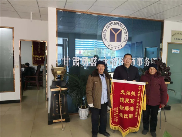 勇盛(永靖)律师事务所律师积极办理法律援助案件,成立五年来共办理法律援助案件150余件,仅2019年就办理法律援助案件60余件,得到当地法律援助中心的充分肯定。作为法律服务人员,勇盛(永靖)律师事务所律师自执业以来积极为农民工、下岗职工、困难企业、贫困当事人等弱势群体提供法律帮助,免费承办了多起关乎社会弱势群体切身利益的案件,维护了他们的合法权益,受援人赠送锦旗10多面,受到当事人的好评。同时勇盛(永靖)律师事务所还十分热心公益事业,积极参加司法行政部门组织的各项活动。全所律师积极支持普法工作的具体实施,在法制宣传月免费为广大群众答疑解惑。特别是2020年初新冠肺炎疫情爆发肆虐的非常时期,勇盛(永靖)律师事务所充分发挥党组织在律师事务所发展管理中的政治引领作用,组织律师踊跃捐款,无偿为定点医院和部分社区捐赠消毒液,积极贡献自己的力量,服务社会大局,维护社会稳定。