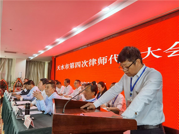 与会代表表示,在市委、市政府和司法局党组的领导下,在市律师行业党委和市律协的带领下开拓创新、锐意进取,不懈奋斗,奉献自己力量,推动律师行业高质量发展,为平安天水、法治天水做出新的更大的贡献。我省兄弟市州律师协会、中国东方文化研究会诉讼文化委员会、中华杨氏律师联盟对本次律师代表大会的召开发来贺电表示祝贺。市司法局党组成员、副局长曹辉,律师行业党委书记、市司法局调研员昌业庚,市司法局人事科、律师和法律资格考试科、公共法律服务中心等相关科室负责人也出席了大会。最后,市司法局党组成员、副局长温建平宣布天水市第四次律师代表大会胜利闭幕!