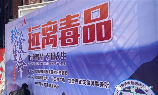 在第33个“国际禁毒日”即将来临之际,甘肃兴正天律师事务所于2020年6月18日作为协办单位,参与了七里河区敦煌路街道柳家营社区党总支在兰州市七里河区中天健广场开展的“国际禁毒日”主题活动——“珍爱生命,远离毒品”。