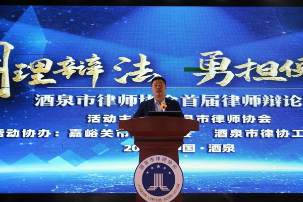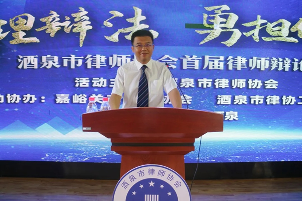 酒泉市律师行业党委副书记、酒泉律师协会会长卢永建同志为辩论赛开幕式致辞