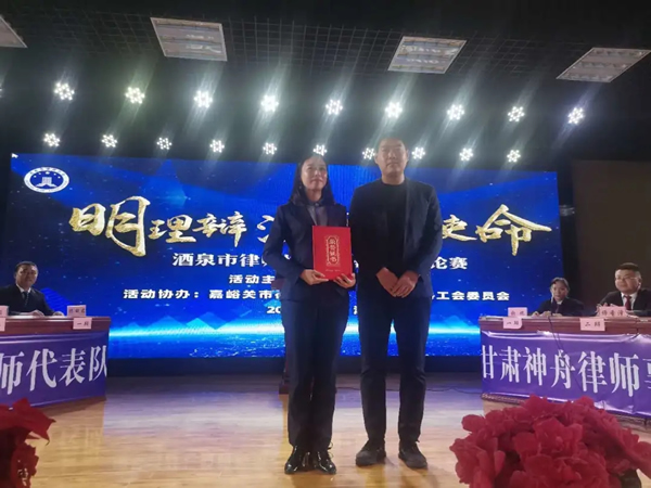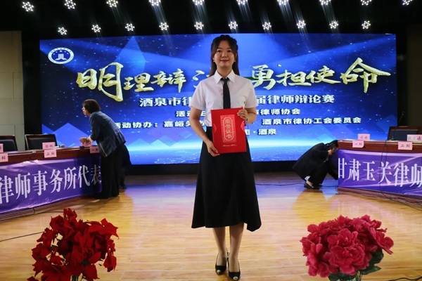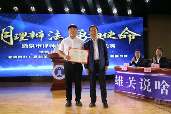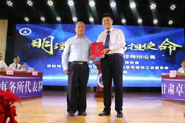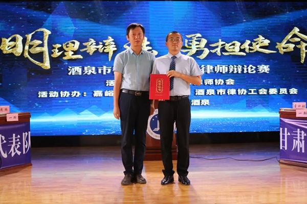本次辩论赛以“明理辩法 勇担使命”为主题,由酒泉市律师协会主办,嘉峪关市律师协会和酒泉市律师协会工会委员会协办。初赛阶段邀请了酒泉市司法局党组成员、副局长李东堂,嘉峪关市司法局党组成员、副局长、嘉峪关市律师行业党委书记郑浩,嘉峪关市政府办副主任韩宏斌,嘉峪关市律师协会会长叶其钦,酒泉市律师行业党委副书记、酒泉市司法局公共法律服务管理科科长李晓敏,酒泉市肃州区人民法院研究室主任岳天和,甘肃正天合(酒泉)律师事务所主任王瑾,甘肃金伯韬律师事务所主任闻伯刚为评委。