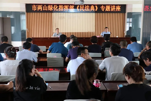 正天合争议解决业务部杨兆昌律师为兰州市南北两山环境绿化工程指挥部做《民法典》专题讲座。