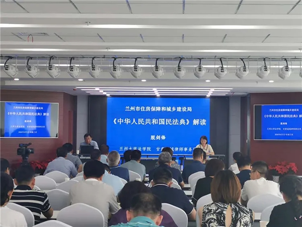 2020年8月5日下午,我所脱剑锋律师受邀为兰州市住房和城乡建设局开展《民法典》专题培训讲座。局机关领导干部、局属单位党政负责人、政法科负责人共90余人参加了此次讲座。