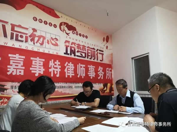 甘肃嘉事特律师事务所主任田家明释明了本次专项整治活动的重要性,宣布会议的三项议程,安排部署了甘肃嘉事特律师事务所下一步贯彻落实专项整治活动的具体计划。会上律所主任田家明律师带领全所律师签署《律师承诺书》,以上述通知及承诺书内容为标准,自查自省,并形成律所、个人自查报告及整改清单。