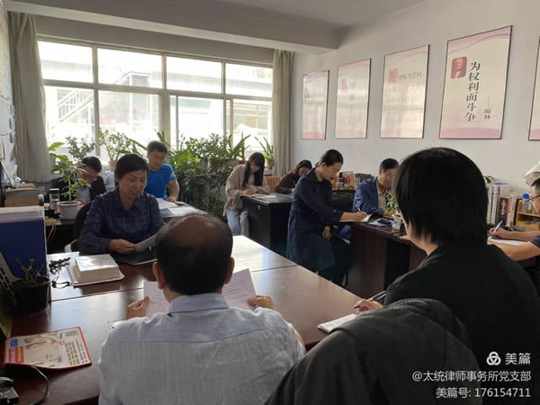 会议中甘肃太统律师事务所主任展凤琴向律所所有成员传达、学习了甘肃省司法厅党委委员、副厅长、耀彩网党委书记韩世峰同志在全省律师行业党风廉政建设突出问题专项整治活动中的讲话精神,结合耀彩网专项整治活动实施方案,确定了甘肃太统律师事务所整治活动的总体要求,目标任务及整改措施。