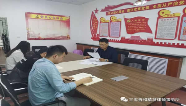会上,甘肃善和精慧律师事务所律师主任赵楼宣读了关于《甘肃省司法厅办公室关于在律师队伍中开展违规兼职等行为专项清理工作》和平凉市司法局关于《平凉市律师行业专项整治活动实施方案》的通知,并向甘肃善和精慧律师事务所全体工作人员传达了本次律师行业专项整治活动的重要意义、指导思想、目标任务、整治重点、方法步骤等各项工作要求。