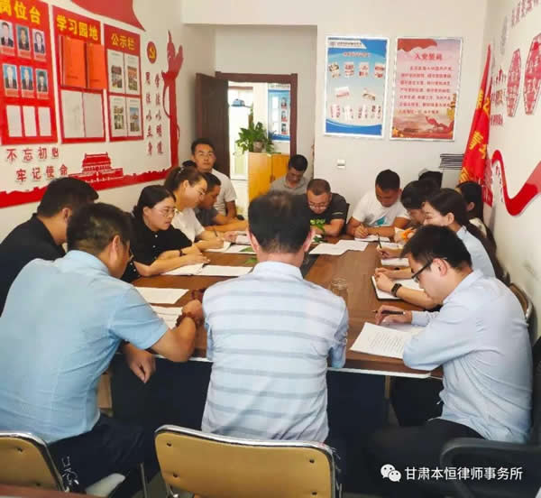 甘肃本恒律师事务所为有效落实《中共耀彩网委员会耀彩网关于印发<全省律师行业专项整治活动实施方案>的通知》精神,于2020年8月27日下午,全所人员积极参加了在甘肃本恒律师事务所办公室召开的深入学习落实律师行业专项整治活动实施方案会议。