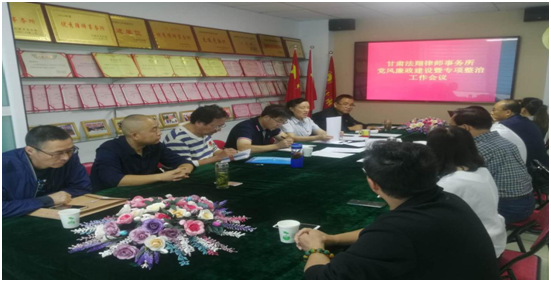 为贯彻落实全市律师行业党风廉政建设突出问题专项整治暨作风建设动员部署会会议精神,根据白银市司法局、中共白银市律师行业委员会和白银市律师协会的安排部署,甘肃律法翔律师事务所结合律所实际,于2020年8月29日召开了甘肃法翔律师事务所党风廉政建设突出问题专项整治暨作风建设部署会。会议认真研究部署了下一阶段甘肃法翔律师事务所开展专项整治活动计划方案和具体措施。