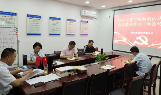 2020年9月1日,甘肃陇域律师事务所按照省市律师行业党委和各级司法行政机关的要求,紧扣“不忘初心、牢记使命”主题教育活动和全省律师行业突出问题专项整治活动的主题,召开了律师行业专项整治活动学习暨问题排查纠正整治活动转段会。