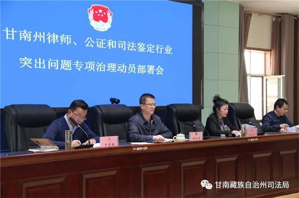 3月15日,根据司法部和省司法厅统一部署,甘南州司法局组织召开全州律师、公证和司法鉴定行业突出问题专项治理动员部署会议。州司法局党委委员、副局长、州律师行业党委书记杨旭林同志出席会议并作动员讲话。