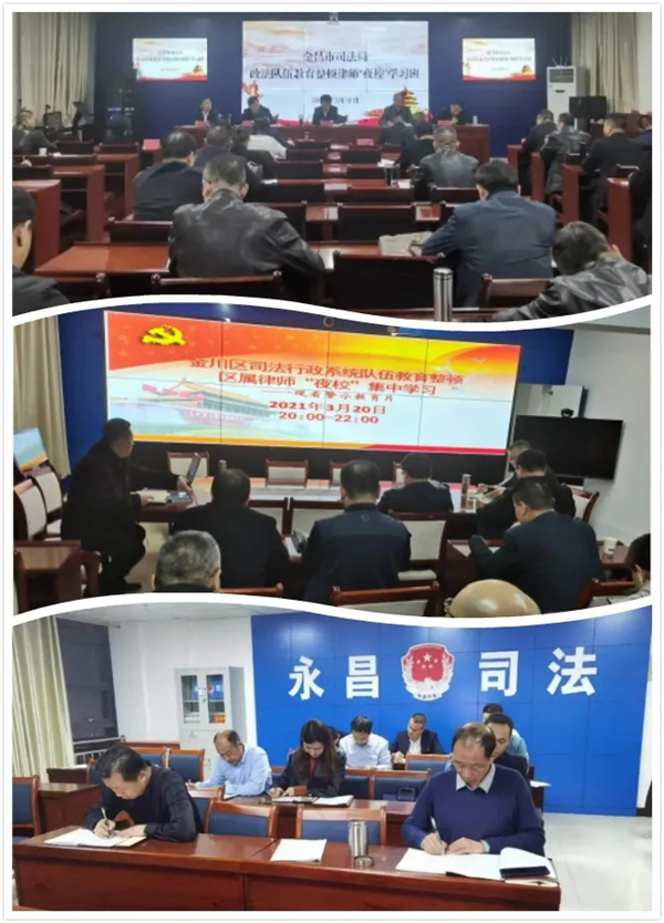 随后,全市律所、律师迅速响应,相继召开了本所的动员部署会,将专项治理和党史学习教育相结合,制定了教育学习环节的“行动图“和“课程表“,编印发放了学习资料,开展多种形式的集中学、自学、座谈交流活动,积极参加市、县、区司法局组织的为期三晚六个课时的“律师夜校学习班”和警示教育基地实践活动。截止目前,全市律所共组织集中学习80余次,开展警示教育100余人次,参加夜校培训200余人次,撰写学习心得100余篇。