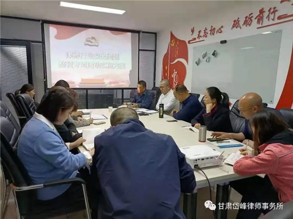 为了进一步确保专项治理工作走深走细,确保学习教育环节的各项工作任务落到实处,市属律师事务所了召开专项治理推进会,在前期各所召开的动员部署会的基础上,对各环节任务再部署再落实,对还没有完成的任务查缺补漏,确保工作取得实效。