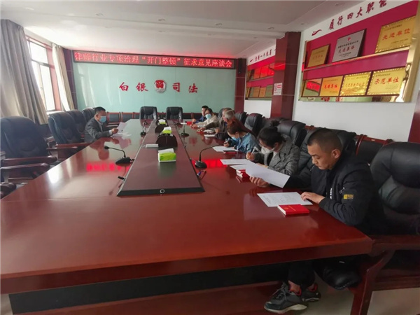 3月25日,白银市司法局邀请群众、律师、司法鉴定、人大代表、政协委员等社会各界代表到市司法局召开征求意见座谈会,座谈会上听取了代表们对我市律师工作和专项治理工作的意见建议,并且填写了调查问卷。