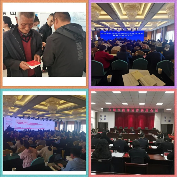 此外白银市律师行业还开展了检律联席会议、全市律师业务培训会、律师文化及律师职业道德培训、党史培训、赴监狱参加党风廉政警示教育活动、召开党风廉政建设暨警示教育大会等多种形式的学习活动,让全体律师把学习成果入脑入心,确保学习取得实效。