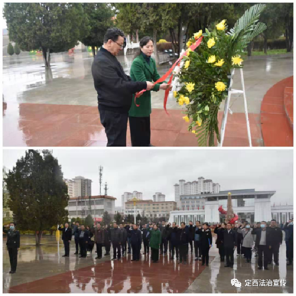 沾衣欲湿杏花雨,吹面不寒杨柳风。初春雨加雪的寒意阻挡不了全市党员律师对革命先烈的缅怀和敬仰之情。市司法局党组成员、副局长、市律师行业党委书记王倩珍和市律师行业党委副书记、市律师协会会长袁振林带领大家排着整齐的队伍,来到会师纪念塔前,在庄严的《国际歌》声中,驻足肃立瞻仰,接着代表全市党员律师向革命先烈敬献花篮,仔细整理花篮上的红色缎带,同全体律师鞠躬致敬,表达对革命先辈的崇高敬意,深切缅怀革命先烈的丰功伟绩,面对党旗铿锵有力地重温了入党誓词,引导党员律师始终不忘入党誓词,牢记初心使命。