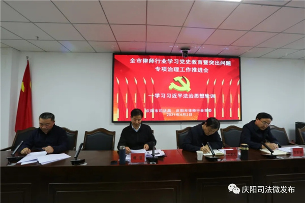 4月2日,庆阳市司法局召开了全市律师行业党史学习教育暨政法队伍教育整顿突出问题专项治理工作推进会。