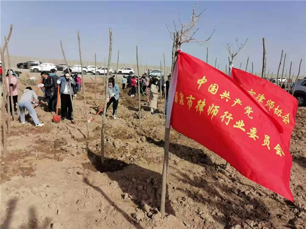 又是一年春光好,植树添绿正当时。2021年4月15日上午,酒泉市律师行业党委委员带领22名律师在茅庵河东岸义务植树基地开展了“为戈壁增绿,为党旗添彩”义务植树主题党日活动。
