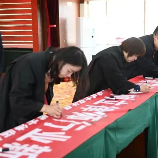 所有律师在“严格依法规范执业树立律师行业新形象”横幅和承诺书上郑重地签下自己的名字,庄严承诺坚定中国特色社会主义理想信念,全心全意为人民群众服务,坚定法治信仰,把维护公平正义作为核心价值追求,牢固树立诚信意识, 热爱律师职业,珍惜律师荣誉。