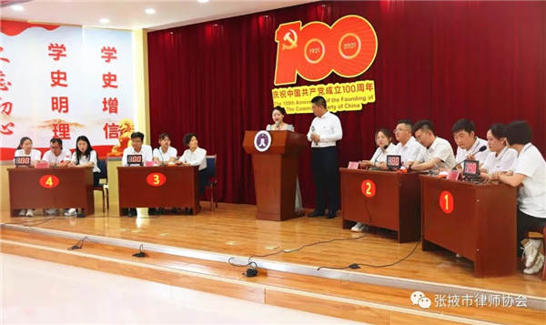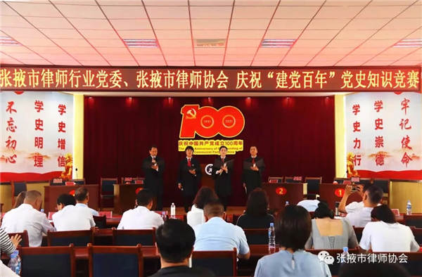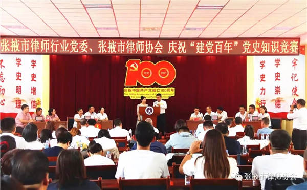 为深入开展党史学习教育,进一步强化薪火相传、传承红色基因的坚定自觉,凝聚起迈进新时代奋进新征程的强大力量,6月26日上午,张掖市律师行业党委、张掖市律师协会组织开展的“建党百年”党史知识竞赛在甘州区司法局会议室精彩上演,来自全市各律师事务所的16支参赛队的"学习高手"一决高下,以重温党的艰苦奋斗光辉历史,缅怀老一辈革命家的丰功伟绩,感悟思想伟力,砥砺初心使命。张掖市司法局党组书记、局长杨瑗芳,张掖市司法局副局长、律师行业党委书记安丽莉,以及张掖市律师协会190多名律师参加了活动。